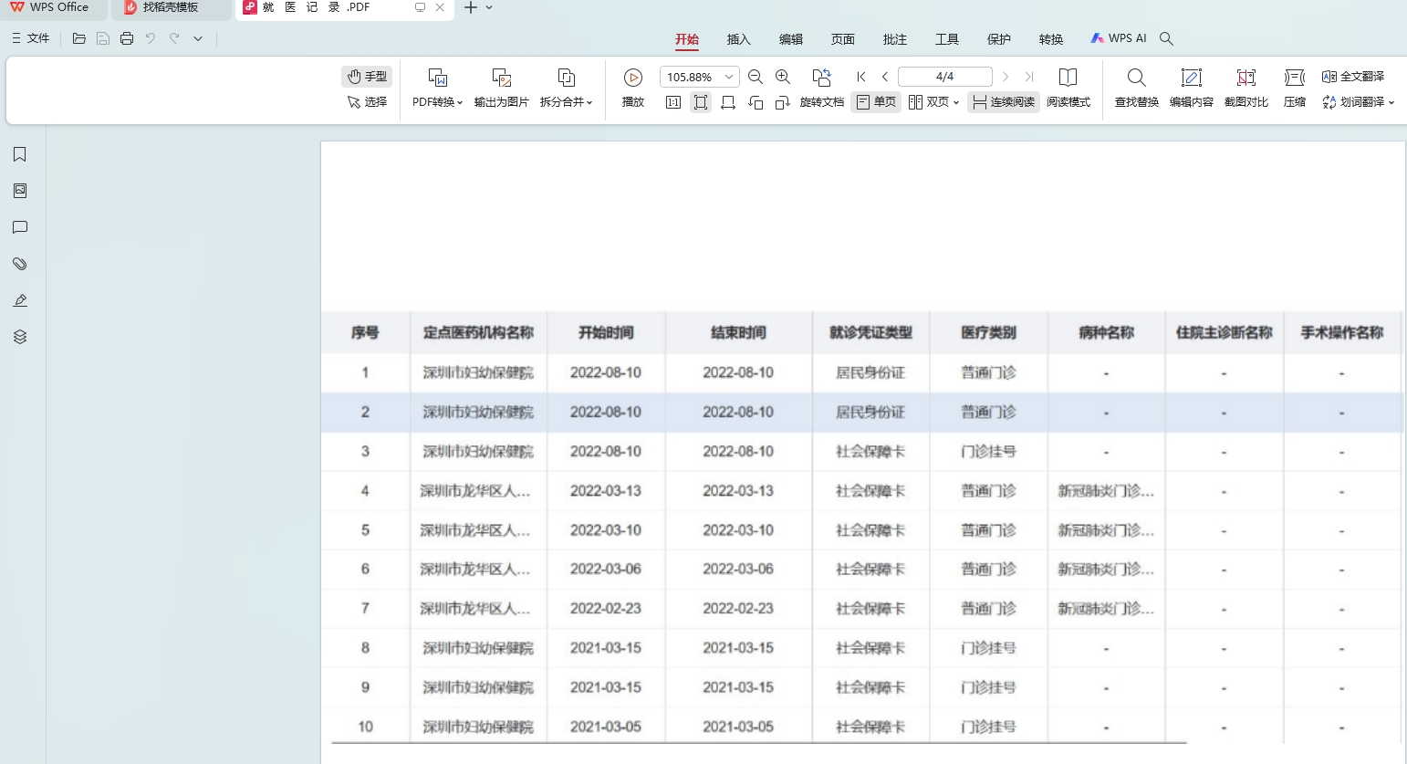 查询医院病例